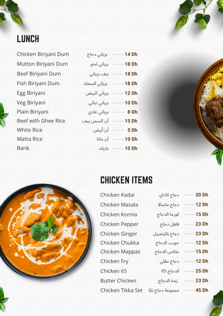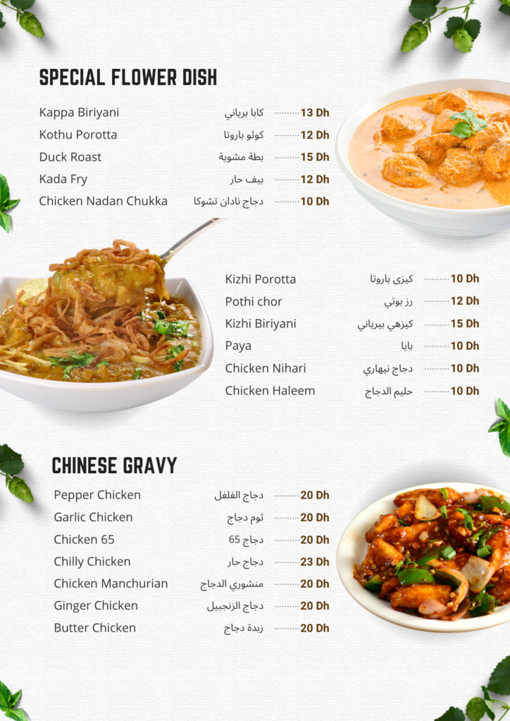 Welcome to Al-Aweer Flower Restaurant, where culinary artistry meets the vibrant flavors of India and the exquisite taste of Kerala. Immerse yourself in a gastronomic journey that celebrates the rich heritage of Indian cuisine, offering an authentic dining experience in the lively embrace of Dubai’s cultural scene.
